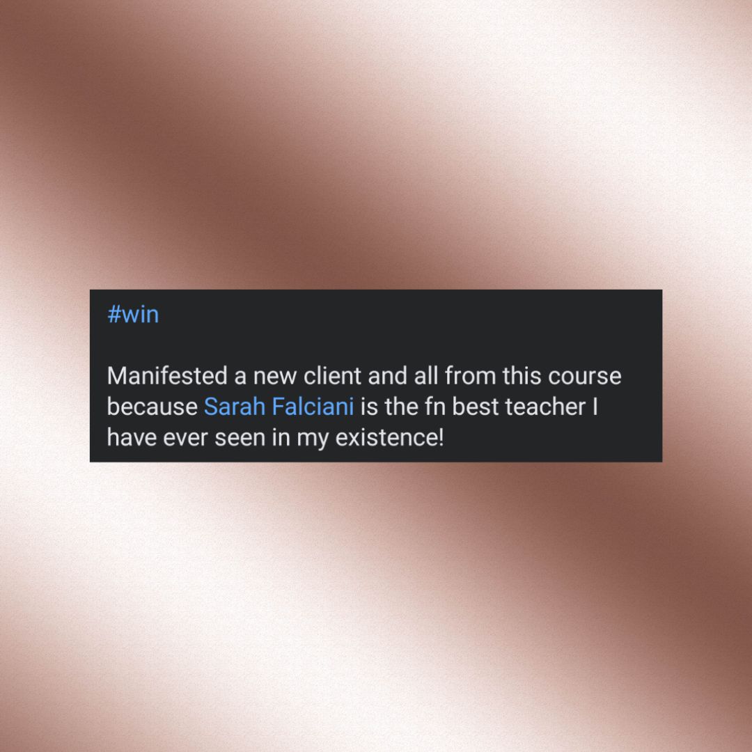 I am not a licensed mental health professional. I am a certified professional coach who specializes in mental performance, life skills, behavior change, manifestation, and supporting individuals in taking their lives from functional to optimal. I always defer to the higher level of licensure. If you are currently under the care of a licensed professional and are curious if this course would be a good addition to the work that you are currently doing with them, feel free to discuss with them and follow their guidance. Email admin@sarahfalciani.com with any additional questions. <3